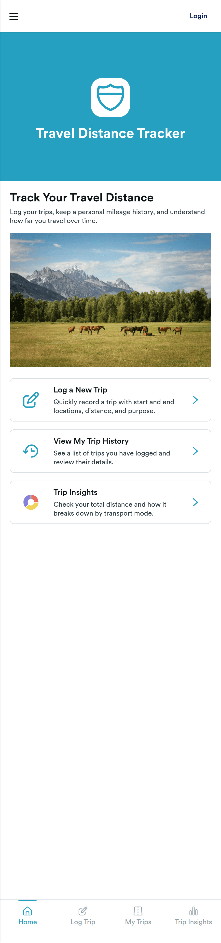 Travel Distance Tracker App helps individuals and teams record trip mileage in one place, then review travel history and patterns over time. It’s a practical fit for field service crews, sales reps, delivery drivers, consultants, and anyone who needs a simple way to log a new trip and keep consistent records for reporting, reimbursements, or internal tracking. From the home screen, users can quickly start a new trip log, jump to a trip history view, or open insights to spot trends like frequent routes and changing travel volume.