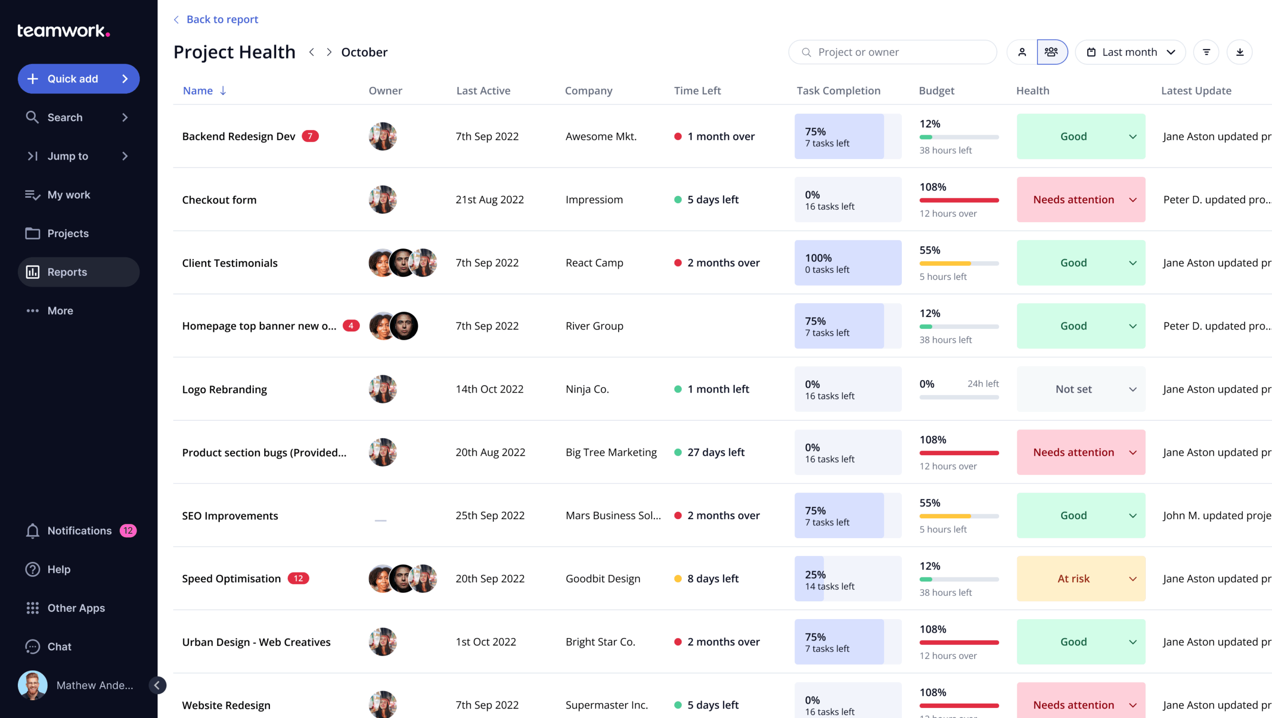 | Teamwork | Client-focused businesses in services, IT, consulting, or marketing | Yes | $10.99 per user per month | 4.4/5 |