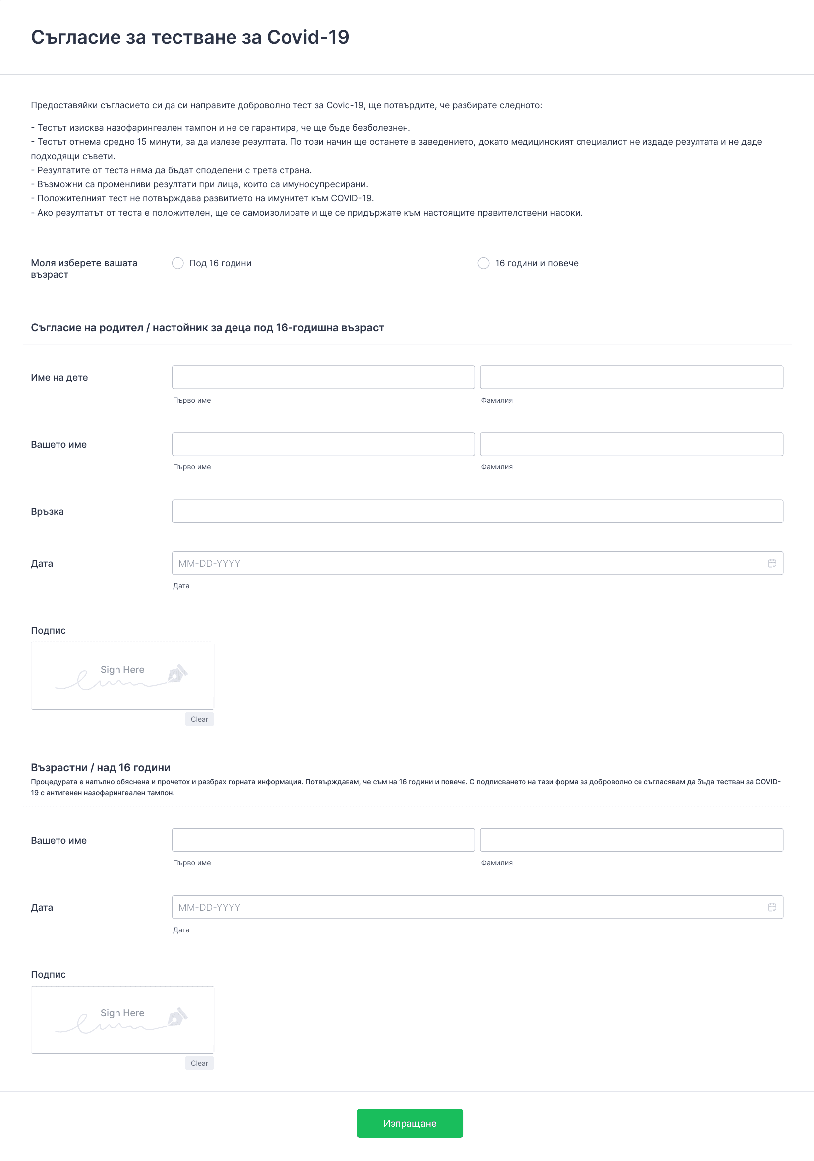 Go to Category:Форми за Отговор на КоронавирусДекларация За Covid 19 Съответствие