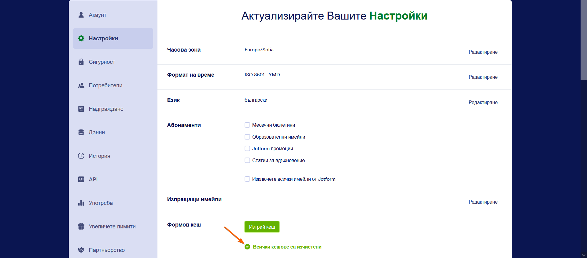 Вече имате възможност сами да изчистите кеша на формите си! Може да се случва рядко, но от време на време да изпитвате някои специфични проблеми с вашите форми. В този случай е добре да изчистите кеша на формите, тъй като това често може да ви бъде от голяма помощ при коригирането на предишни проблеми.