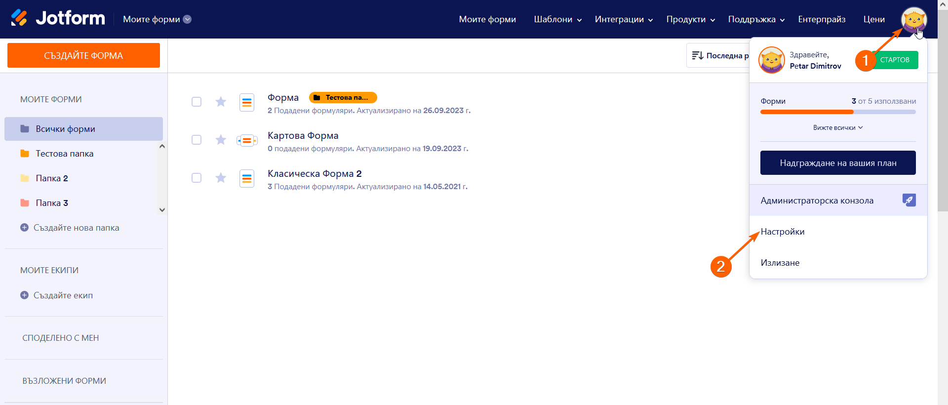 1. Задръжте курсора на мишката върху менюто Потребителски профил/Акаунт в горната дясна част на навигацията.