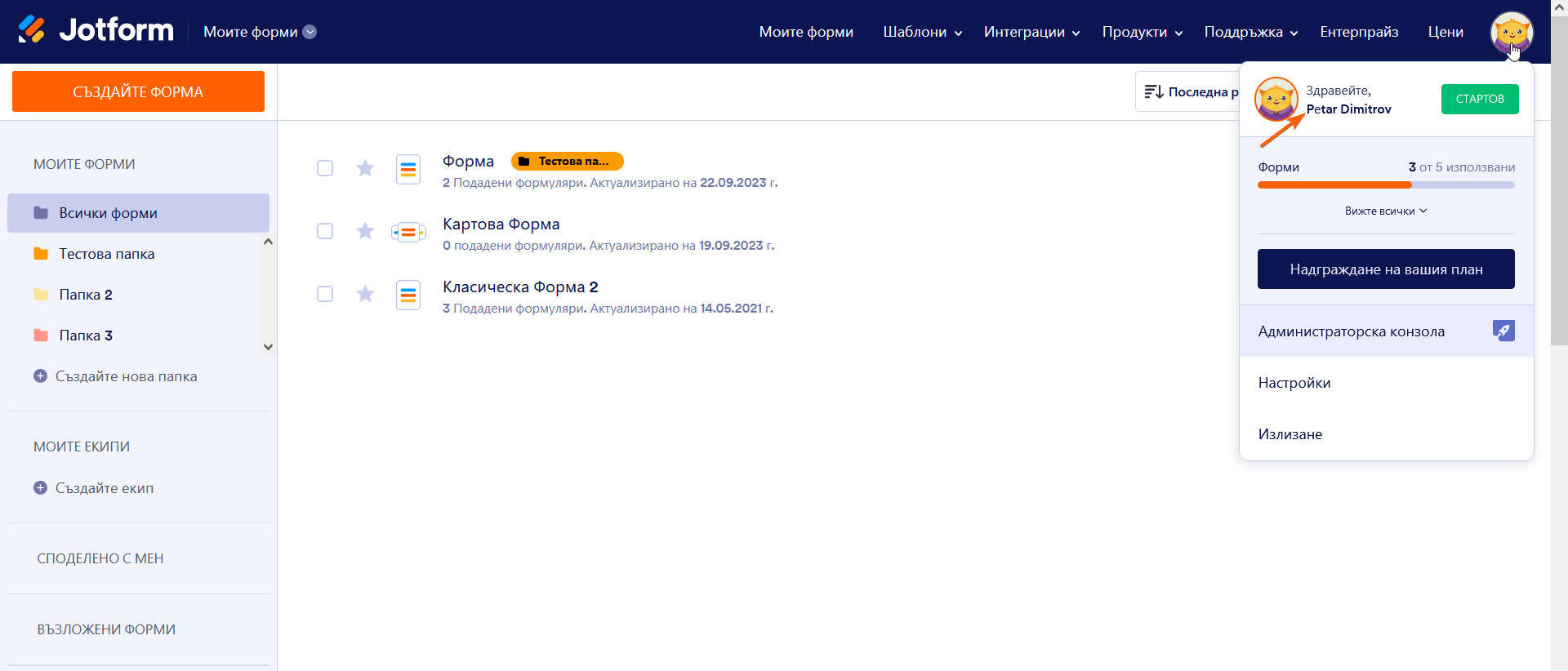 1. Уверете се, че сте влезли с вашия акаунт/потребителско име Jotform на адрес https://www.jotform.com/bg/login/.