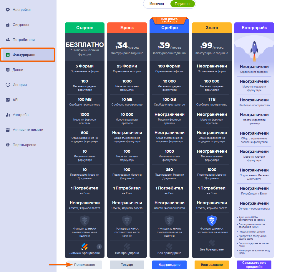 - Акаунта автоматично ще премине към стартовия/БЕЗПЛАТЕН план на датата на изтичане на абонамента.