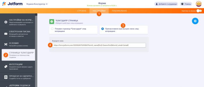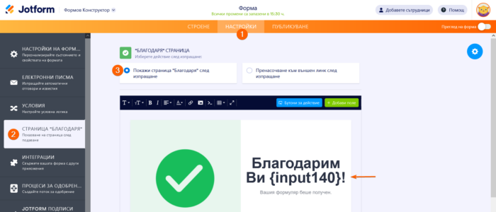 Уникалното име на поле може да се използва за препратка към стойността му на други места, като например в имейли, на “Благодаря” страница или в други полета. Може да се използва и за предварително попълване на формово поле.