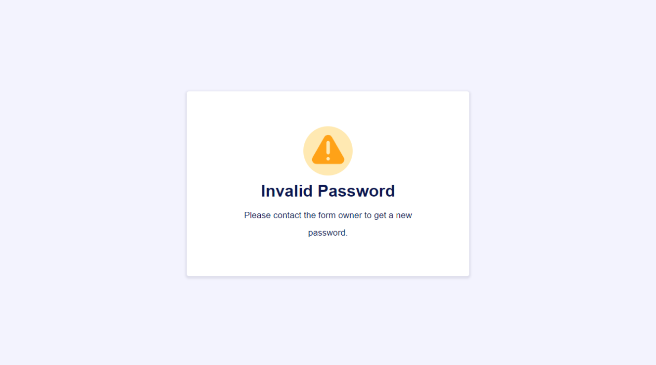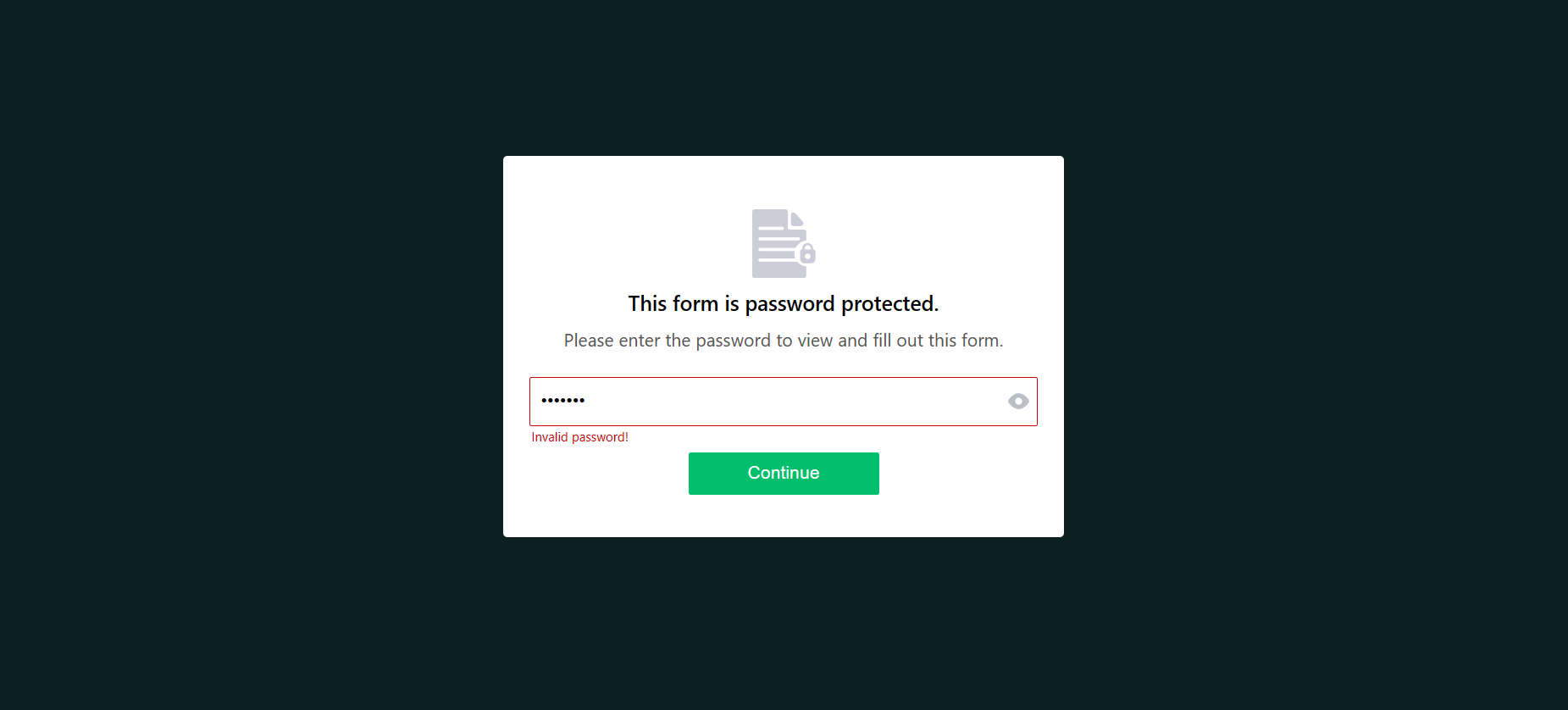 Когато потребителите отворят формата, ще им бъде показана подкана да въведат парола. Ако потребителите не успеят да въведат правилната парола, те ще видят съобщението „Невалидна парола!“.