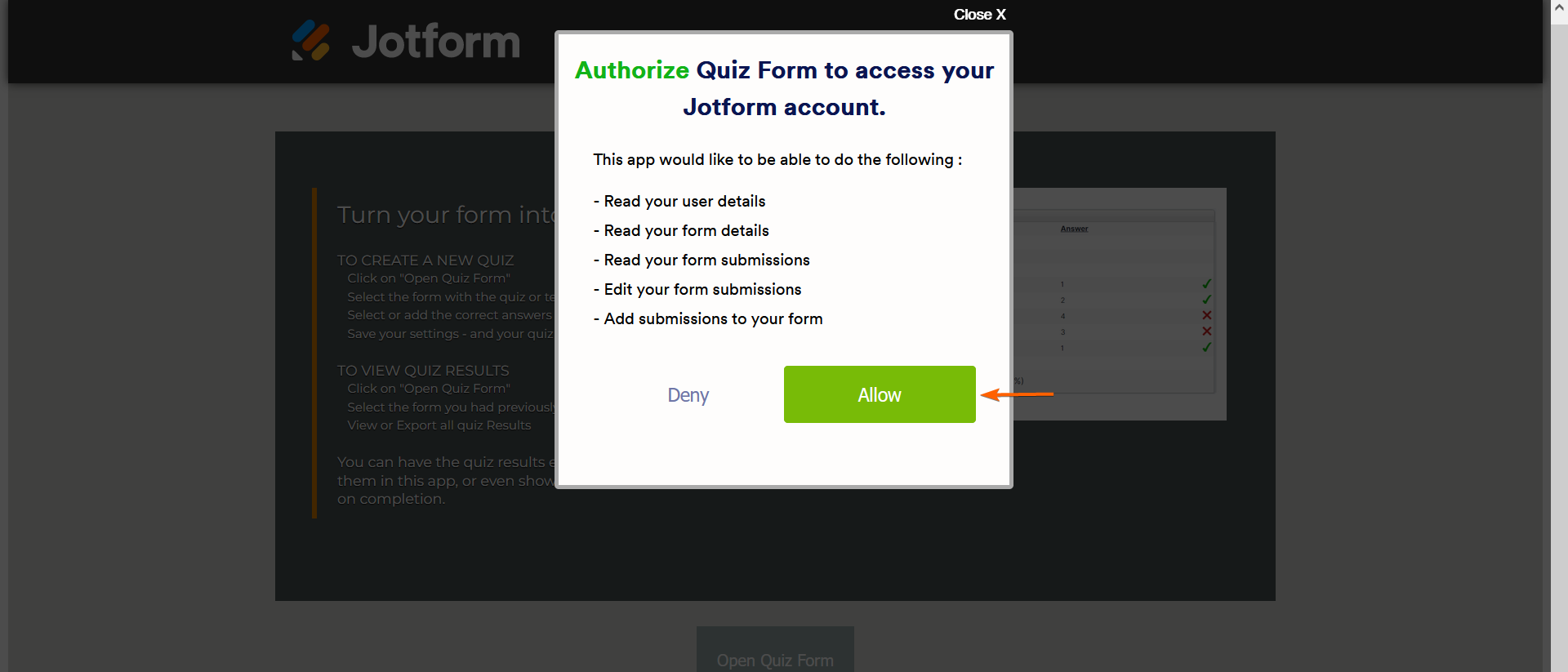 - Изберете Разреши в диалоговия прозорец за оторизация.