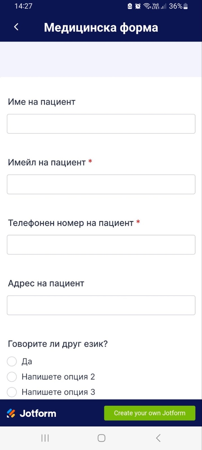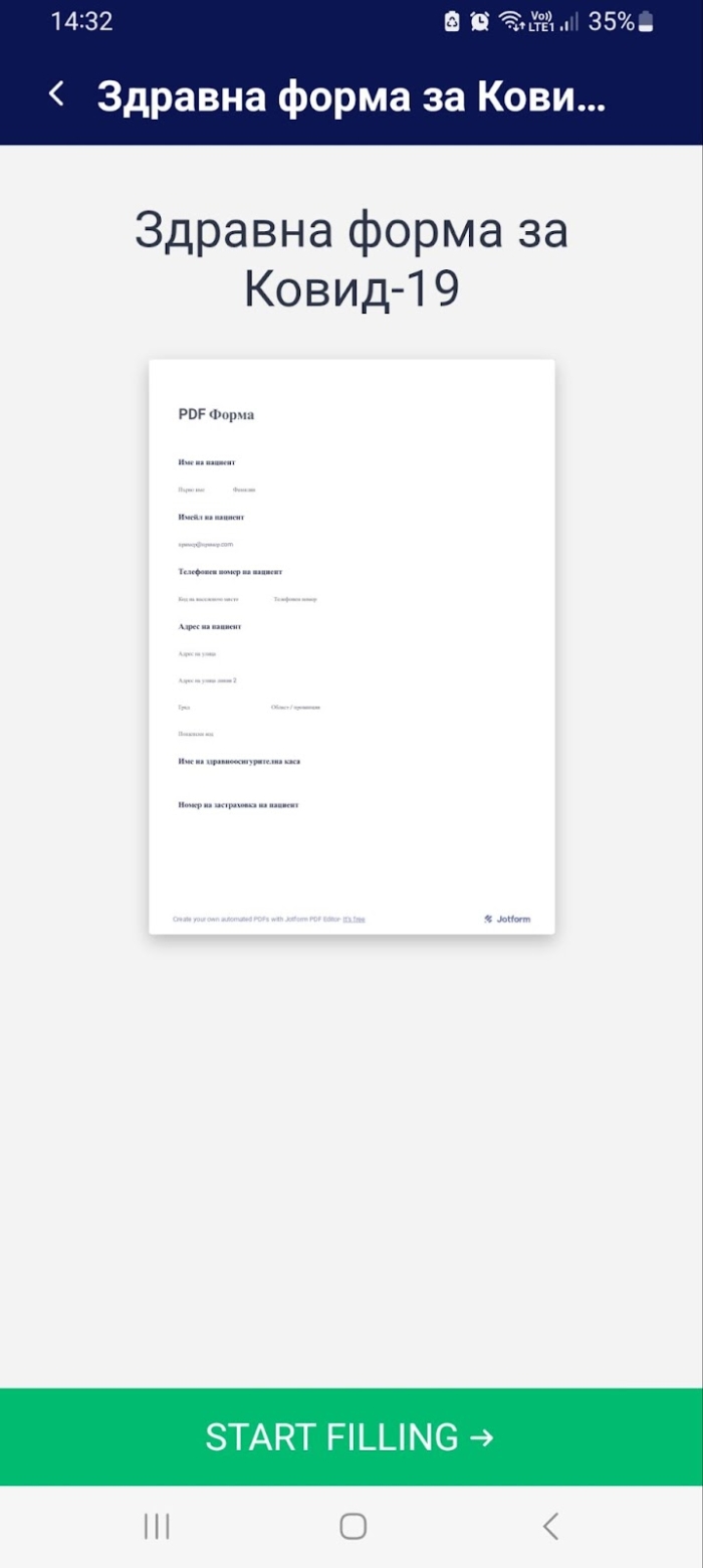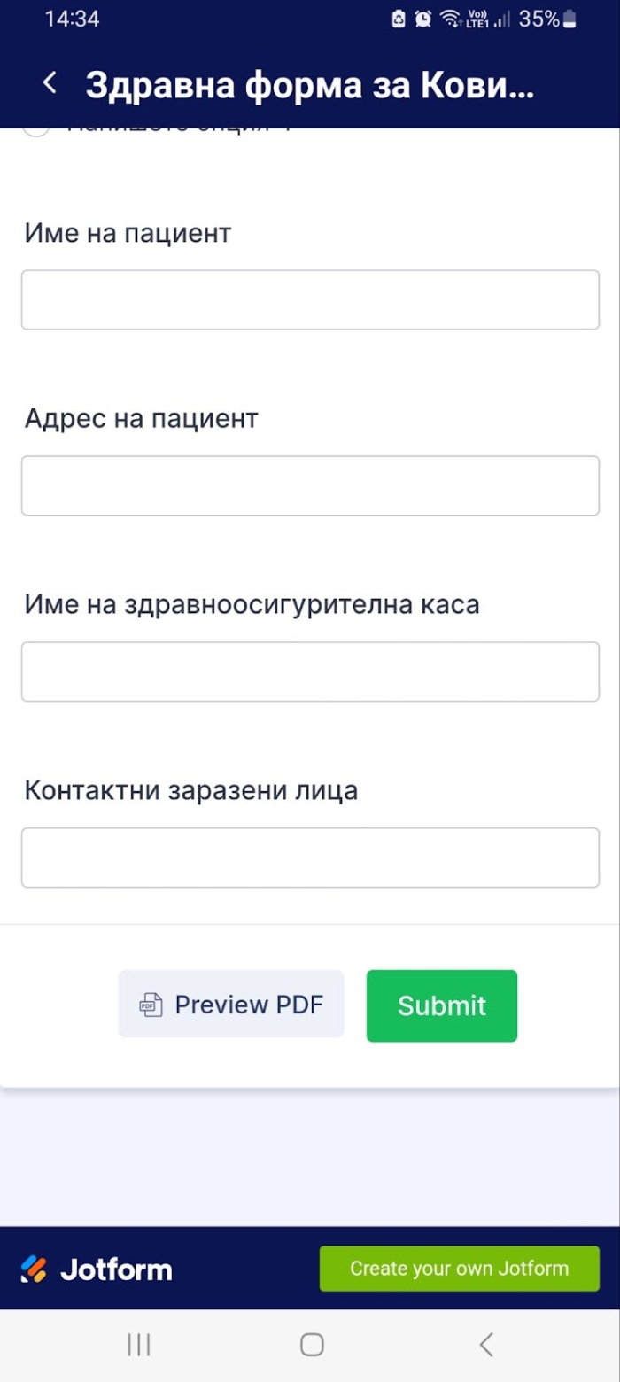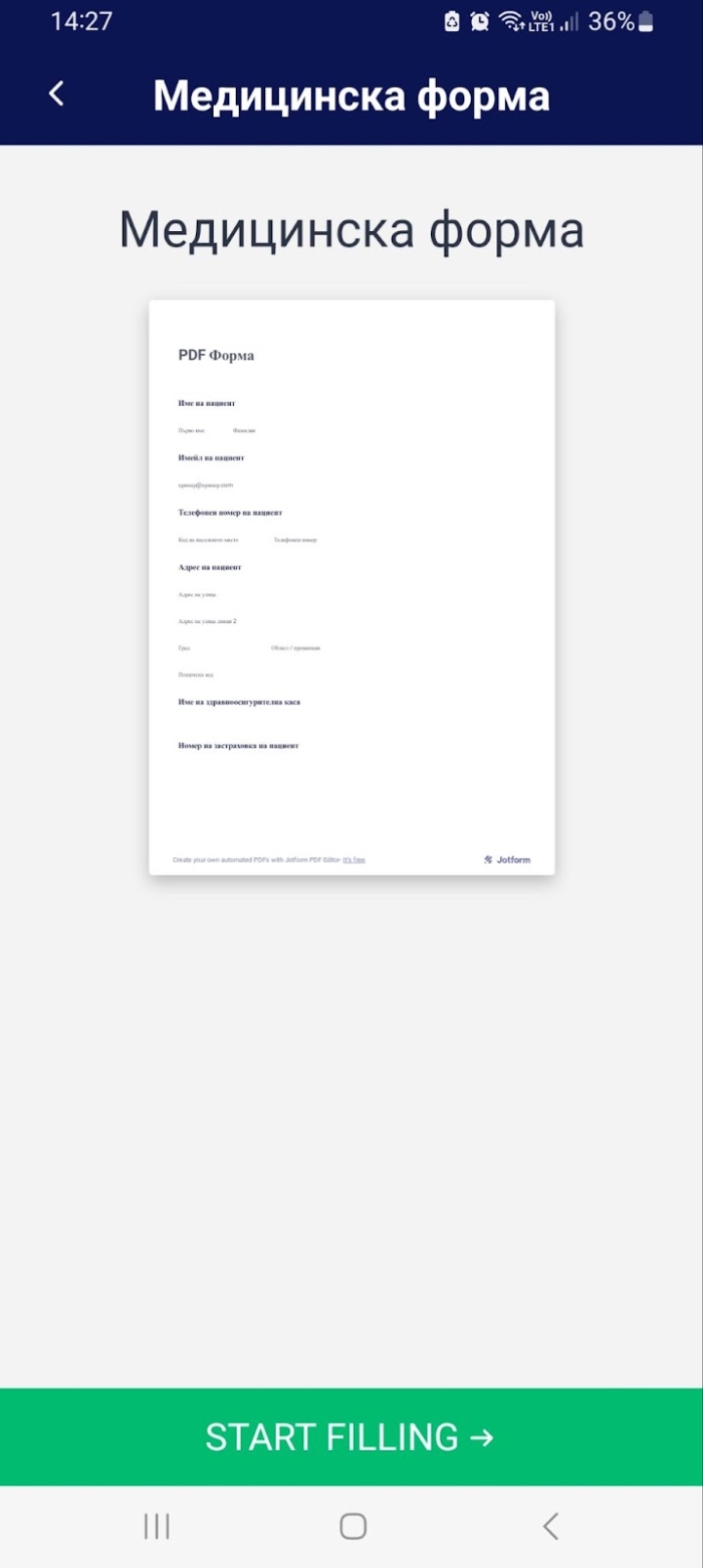 Онлайн форма, която е създадена от PDF през Jotform Умни PDF Форми, се вижда тук в приложението Jotform Мобилни Форми.
