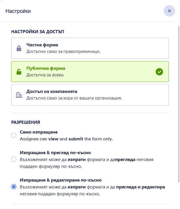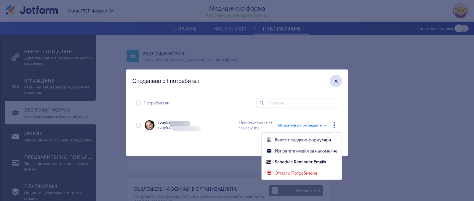 Тази функция също ви позволява да контролирате кой може да вижда вашата форма и какво може да прави с нея.