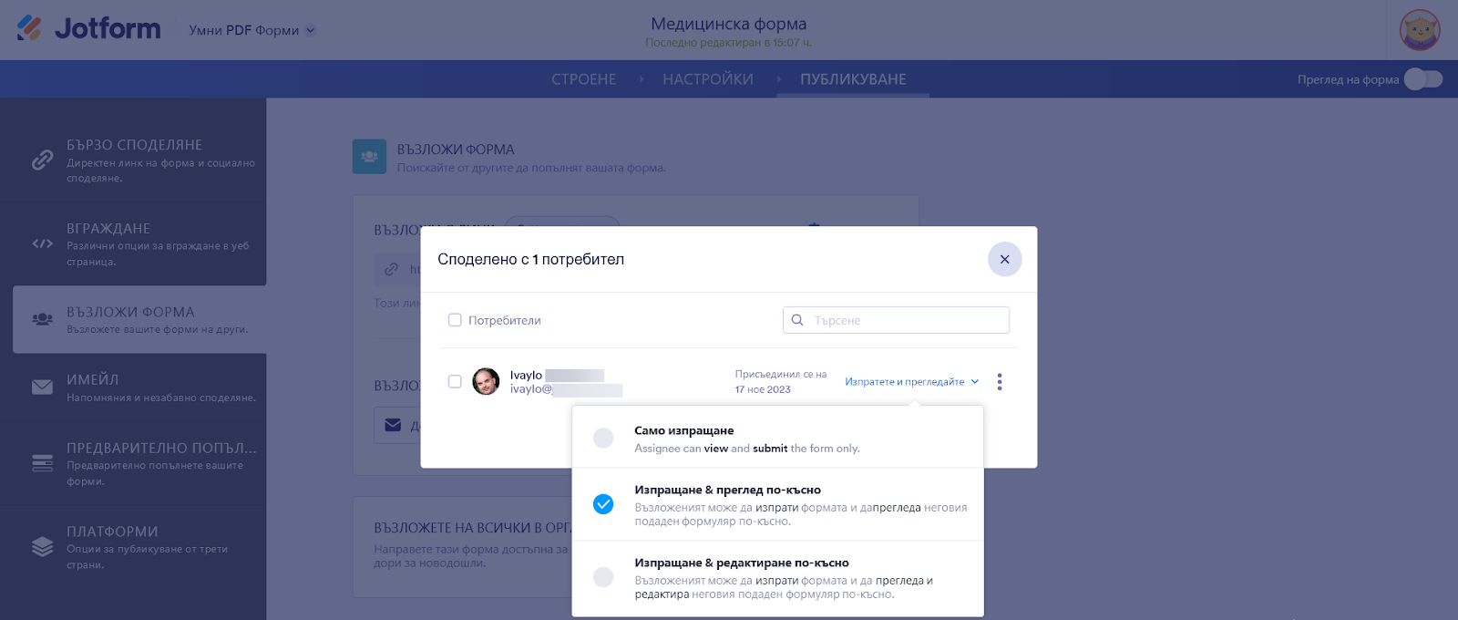 Функцията за възлагане на форми на Jotform ви позволява да наблюдавате кой има достъп до вашата форма и да променяте типа достъп, който имат във всеки един момент.
