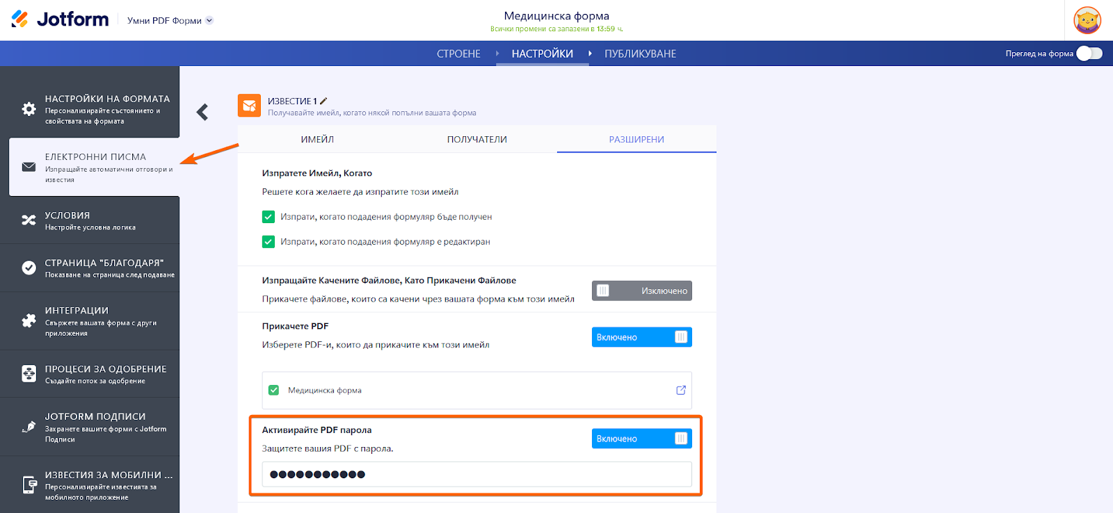 Можете да създадете парола, за да защитите копието на вашия оригинален PDF, който съдържа данните с отговори от вашата онлайн форма.