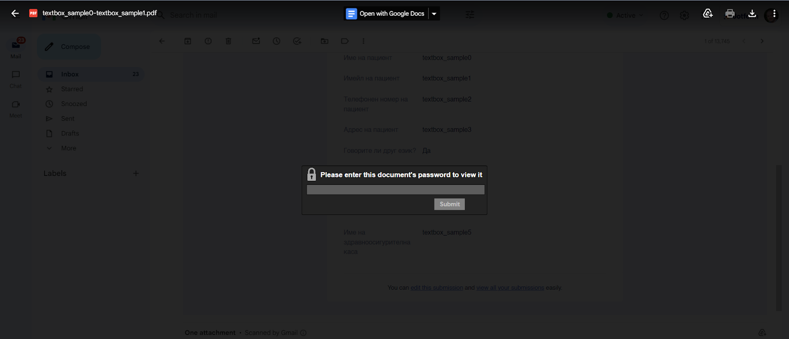 Който получи имейла за автоматичен отговор или известие, трябва да щракне върху прикачения PDF и да въведе паролата, която сте задали, за да дешифрира файла.