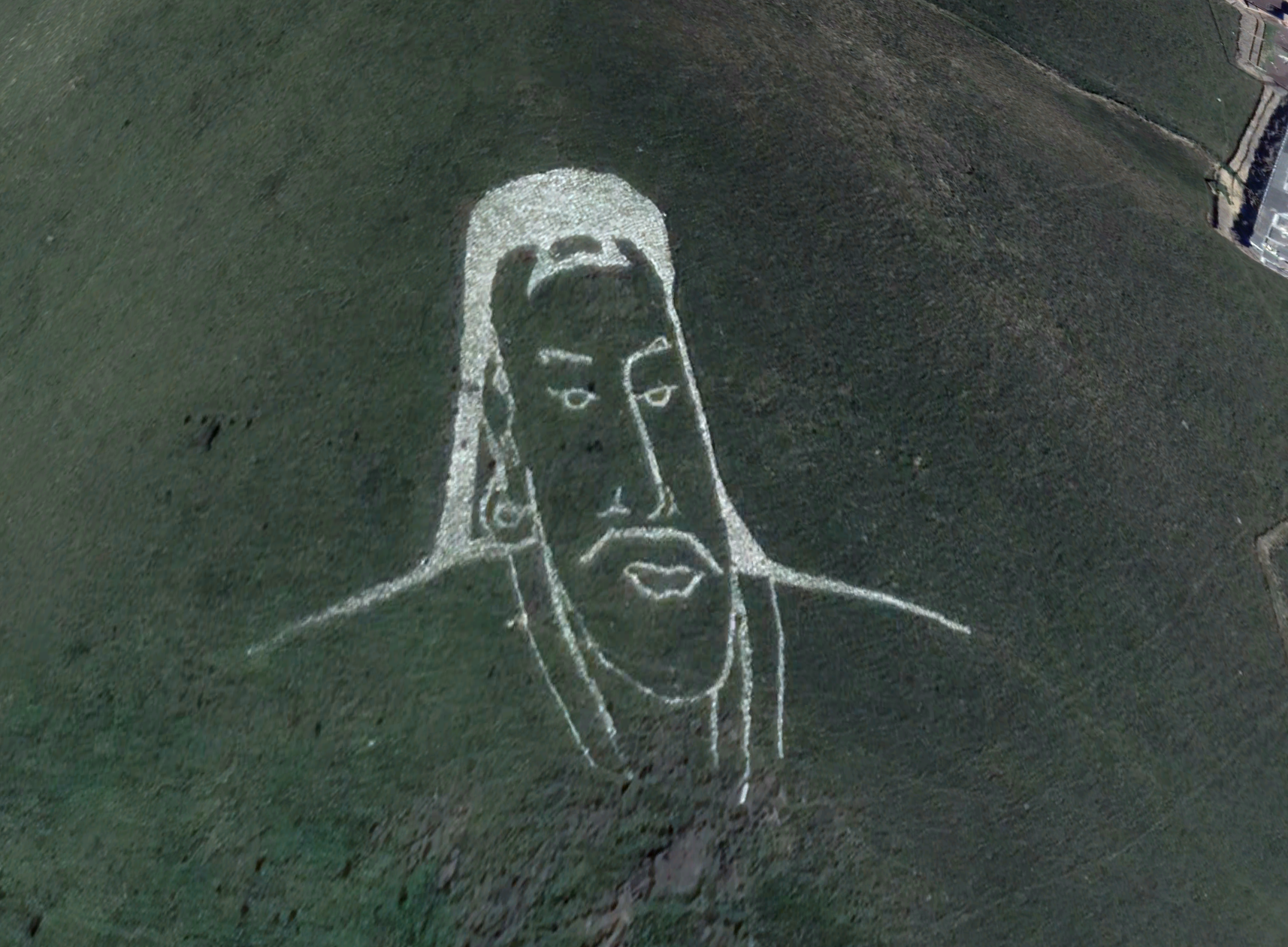 The terrain in Alberta, Canada accidentally forms what looks like a human face when viewed from the air or when viewing the satellite pic in Google Maps.
