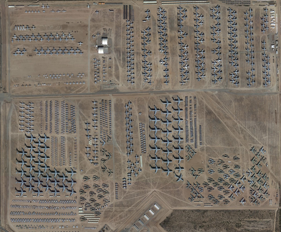 The Boneyard is the largest plane cemetery located in Tuscon, Arizona. The site’s massive size is equal to an astounding 1,430 football fields, providing ample space for the extensive collection of over 4,000 retired aircraft.