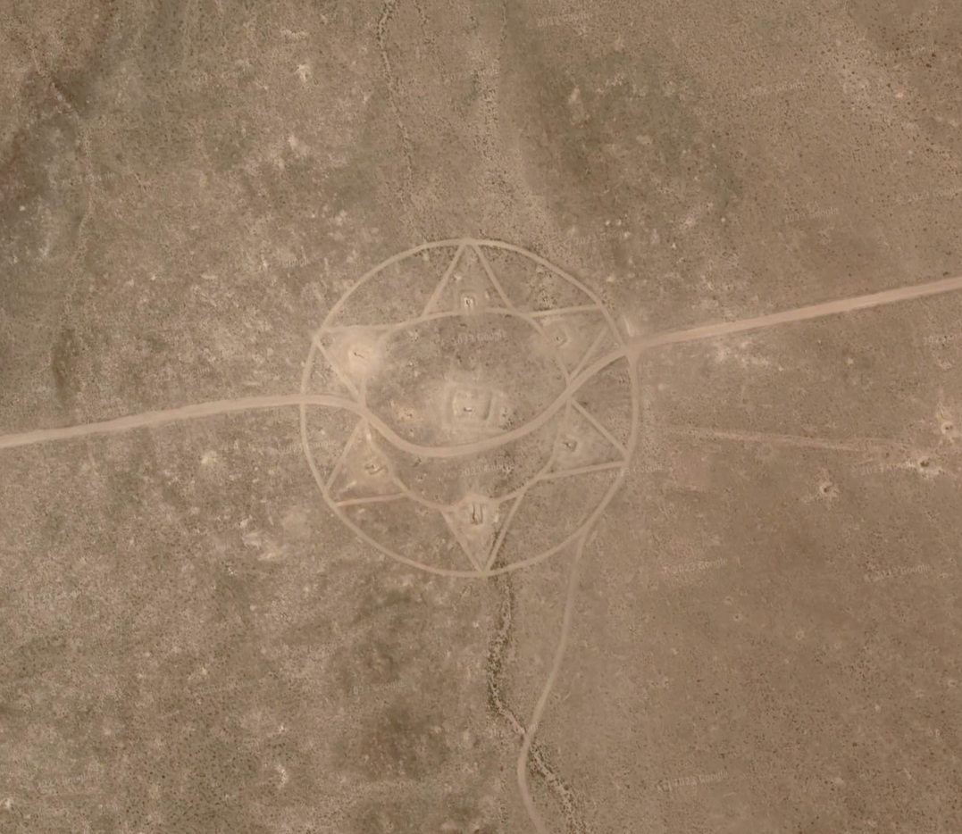 There are bizarre structures discovered on U.S. and British air bases, such as this one located near Norwich in England. The area has been deemed a motorcycle range by the U.K. Ministry of Defense, though some believe it could potentially serve as a calibration mechanism for satellites.