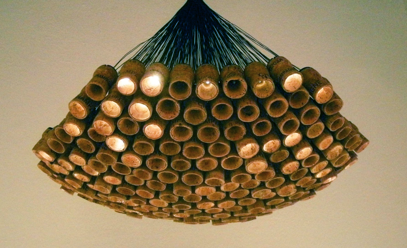 Immerse yourself in the world of Alkesh Parmar’s “Celebration Chandelier,” a breathtaking luminaire that exudes both luxury and sustainability, crafted with finesse using reclaimed champagne corks.