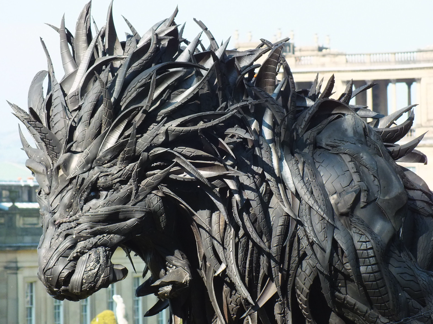 Lion 2, a sculpture made out of tires.