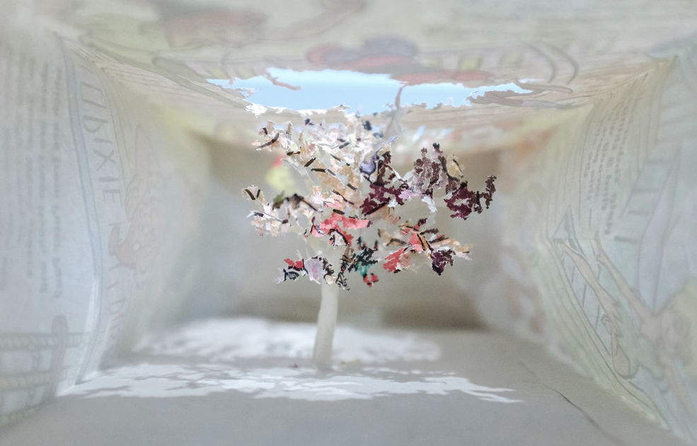 Within the series titled Notice-Forest by Yuken Teruya, a tree stands inside of either paper bags or shopping bags, reminds that it was once part of it.