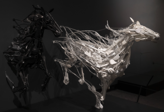 Sayaka uses reclaimed plastic material to build her wonderful sculptures. Look closely at these two and you can see plastic spoons.
