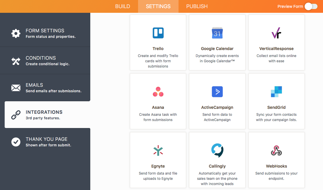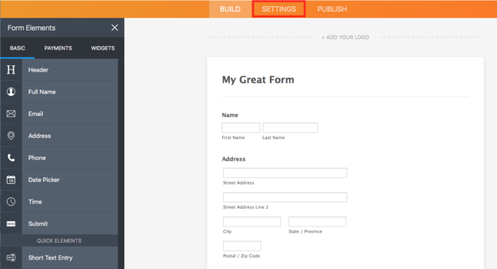 - After you’ve opened your form, click on the Settings tab toward the top of the web page.