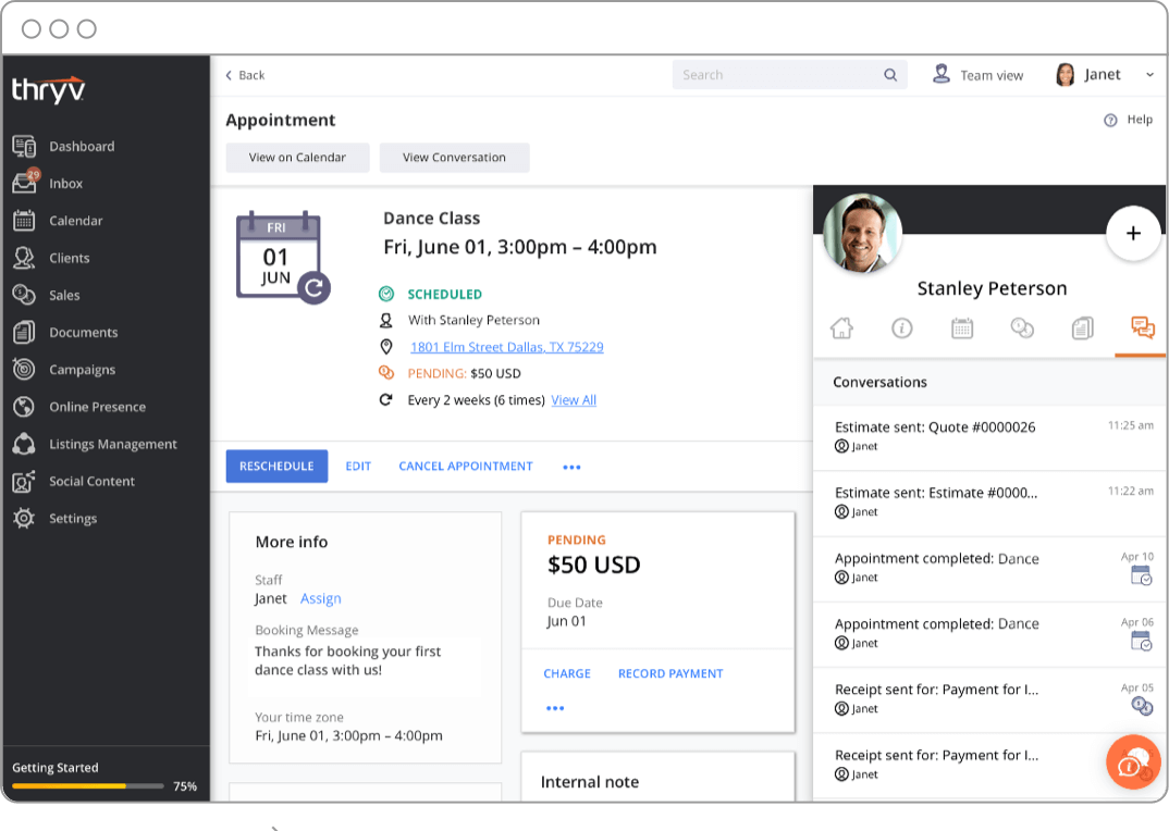 Thryv got its start in 2013 as an all-in-one software solution for small businesses. This Acuity Scheduling alternative is more than just a calendar. In addition to its appointment-booking tool, it features a single dashboard for customer relationship management, reputation management, sales and payments, marketing automation, document storage, and customer communication.