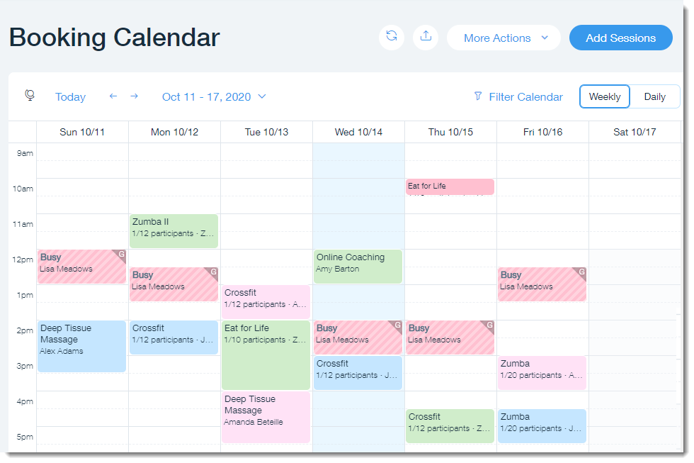 With Wix Bookings, you can manage your calendar and staff schedules; offer memberships, packages, or group session signups to clients; and get analytics on appointment attendance, financial performance, and more. You can run your business from any device through the app.