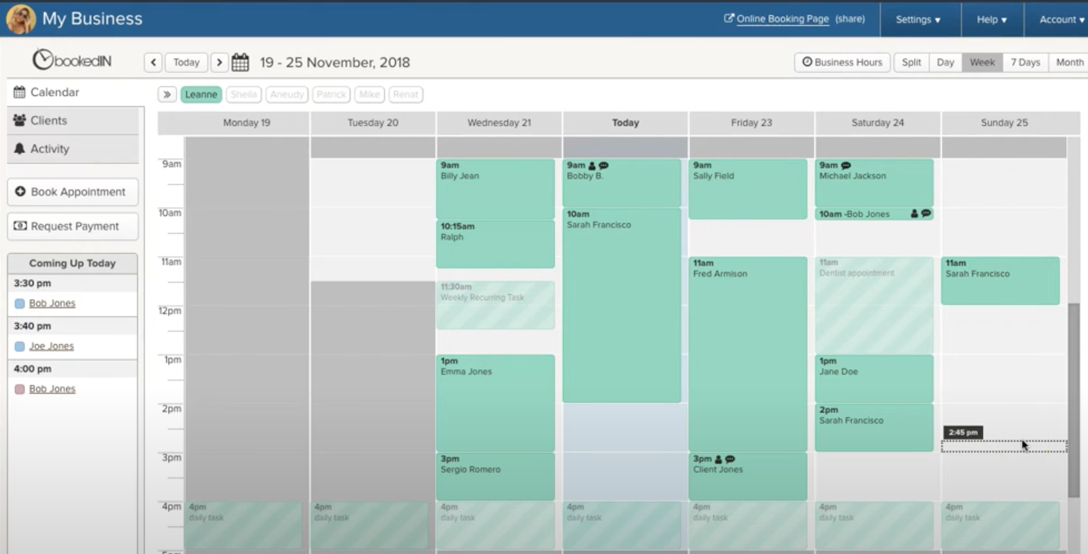 On the scheduling software scene since 2010, Bookedin automates pesky tasks that take up time during the business day. This online scheduling tool includes features like online booking, recurring appointments, custom booking forms, appointment reminders, and online payment processing. Bookedin also provides secure storage of client profiles, client history, and notes.