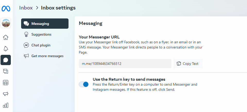 Locate and select your Messenger Inbox on the left side of your Meta Business Suite homepage.