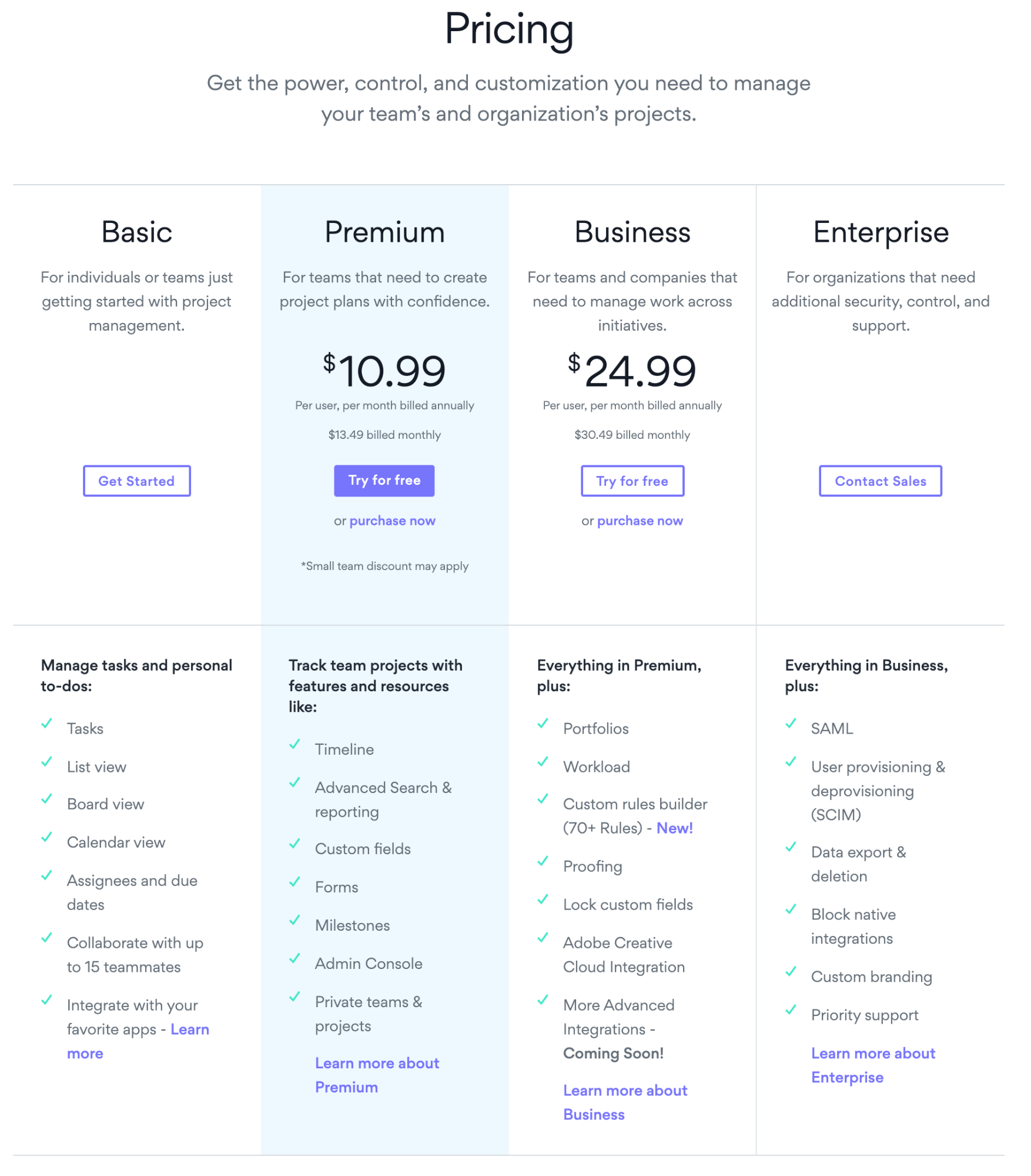 Asana offers a free version that’s ideal for individuals and small teams that need only basic project management functionality. Paid plans start at $10.99 per month for each team member.