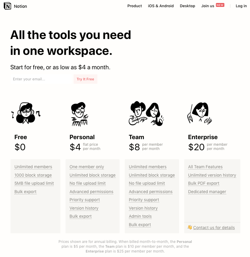Some of Notion’s customers include Figma, Mixpanel, and Pixar. It offers a limited free version as well as team plans starting at $8 per user per month.