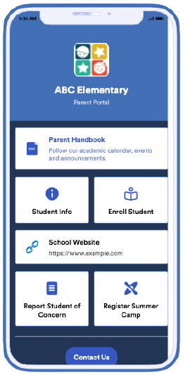 The classroom management app can record students’ attendance and progress; the parent app allows parents to access and provide student data from any device; and the school scheduling app allows students to view their class schedule remotely.
