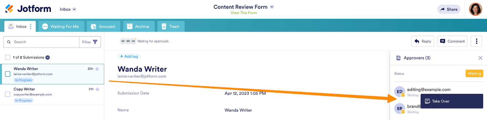 - Easily track who did what during the approval process in both Jotform Inbox and Jotform Tables