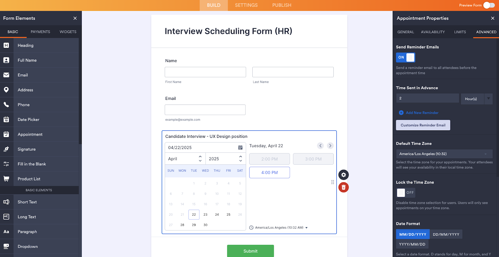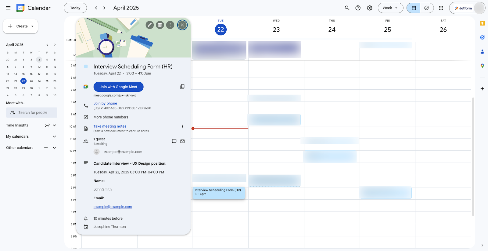 Imagine you’re an HR manager looking to hire a UX designer for your marketing team. If you’re scheduling appointments with a lot of candidates, automating the process can be a huge help. Here’s how to do it using an interview scheduling form in Jotform Enterprise.