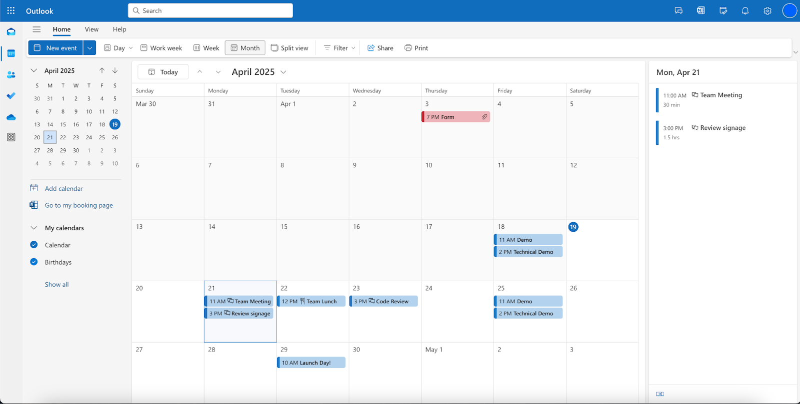 Here’s my sample Outlook Calendar, showing my availability for April 21.