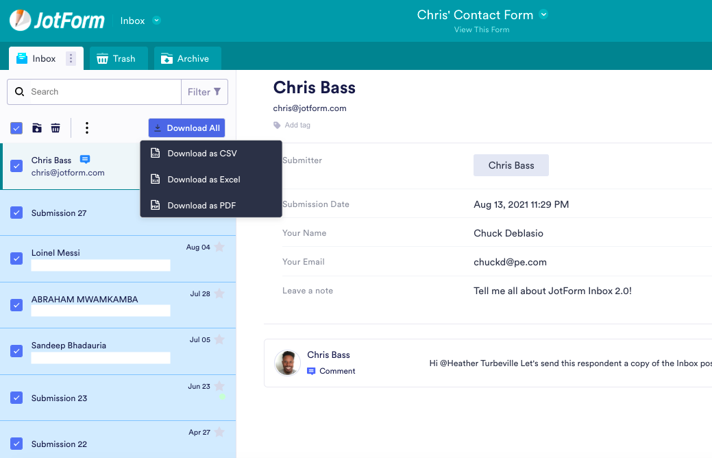 Now your team has a variety of ways to communicate and collaborate on the submissions you receive each day without involving multiple software solutions. Get started with Jotform Inbox 2.0!