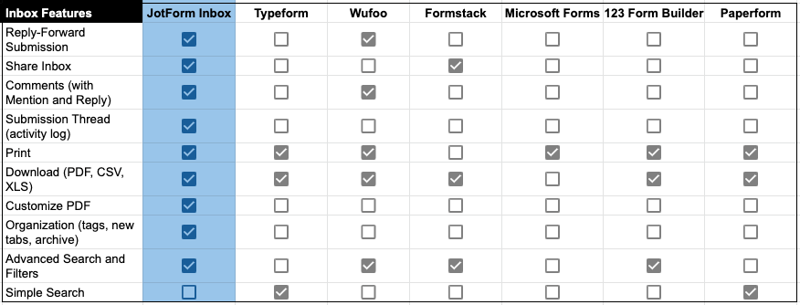 It’s important to us that Jotform users have the tools and functionality they need to do their best work. With Inbox 2.0, you can share data with your team or company and enjoy the kind of feature flexibility that’s unmatched in the industry.