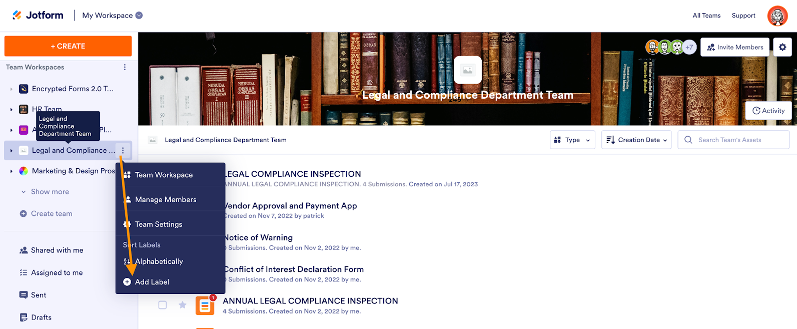 Adding a label is simple. From the My Workspace homepage, click the three-dot icon in the My Workspace sidebar and select Create Label. You’ll also notice a handy option to sort your labels alphabetically, if you wish.