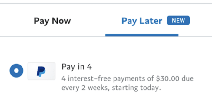 Until now, that is. With the launch of PayPal’s Pay in 4 program, any retailer that uses PayPal Business can now offer payment flexibility at checkout for orders between $30 and $600. Pay in 4 allows customers to pay for their purchases in four interest-free payments over a six-week period, while merchants still get paid up front. It’s a win-win for everyone. (Note that Pay in 4 is only available in the United States.)