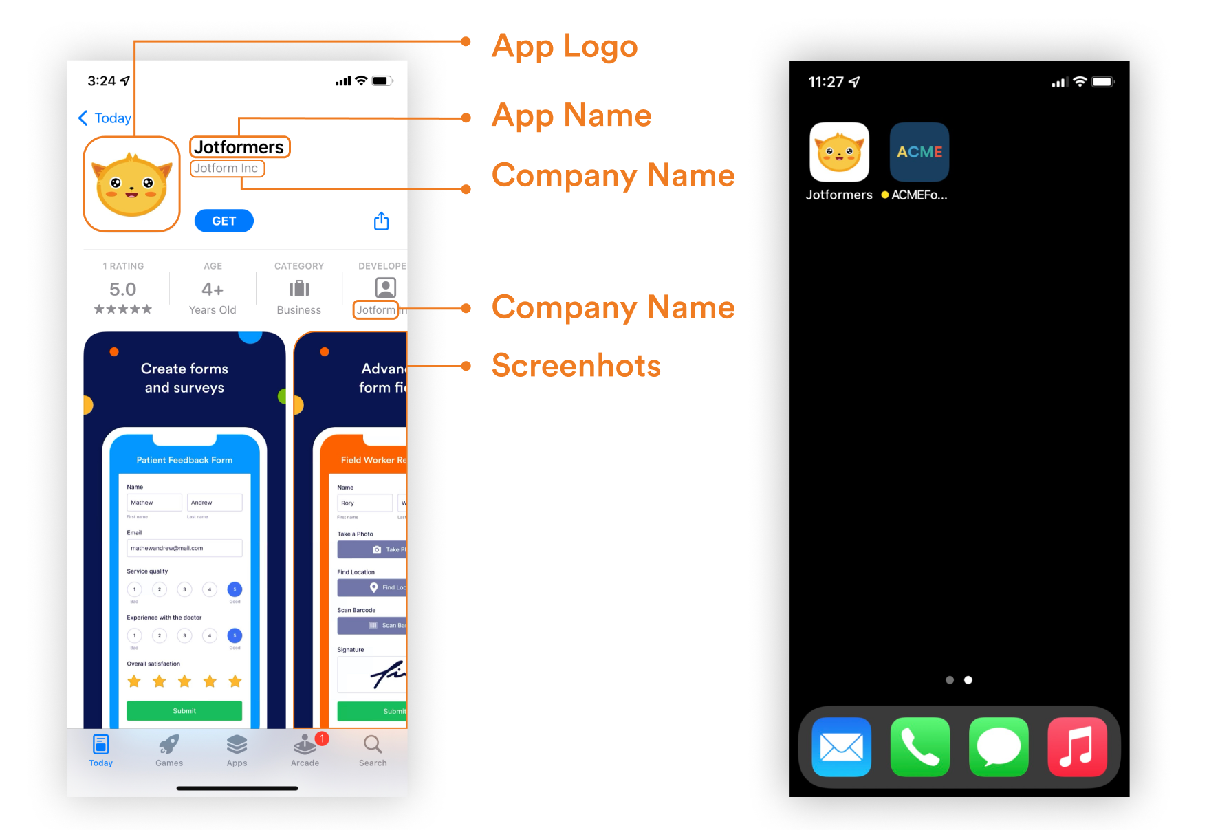 Jotform White-Labeled Apps combines all the practical functionality of Jotform Mobile Forms with the customization benefits of Enterprise. Now you can publish a completely white-labeled native iOS or Android app to the App Store or Google Play store with a Jotform White-Labeled App.