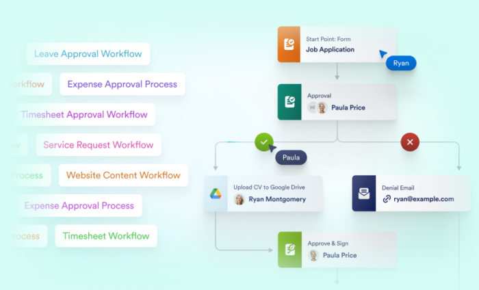- Approval flows: Get approvals from multiple stakeholders, track decisions, and route processes accordingly.