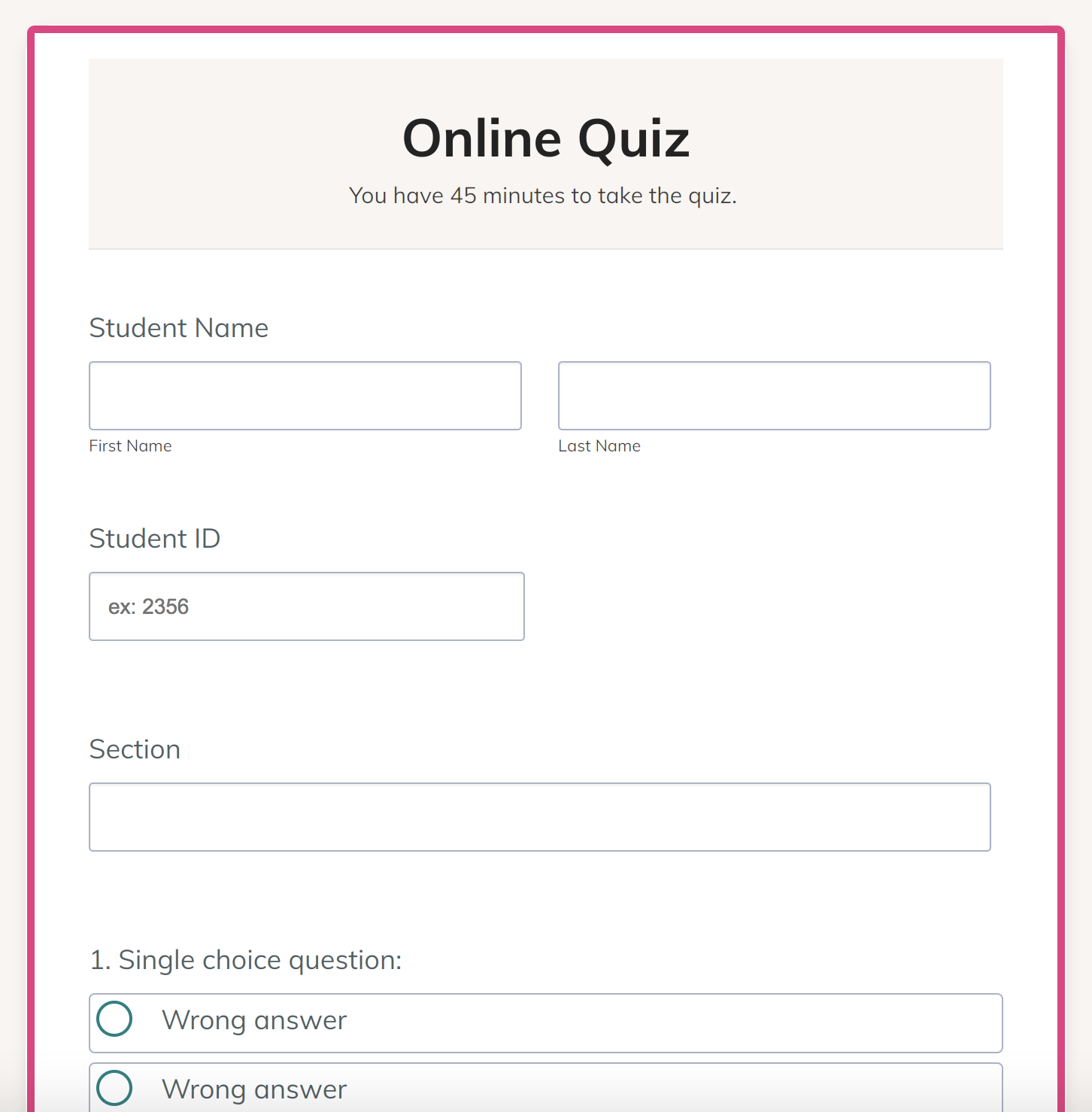 Our suite of education forms also helps you get rid of paperwork and collect data in a standardized way. Use these forms to gather student feedback and other information, evaluate courses, and generate pop quizzes.