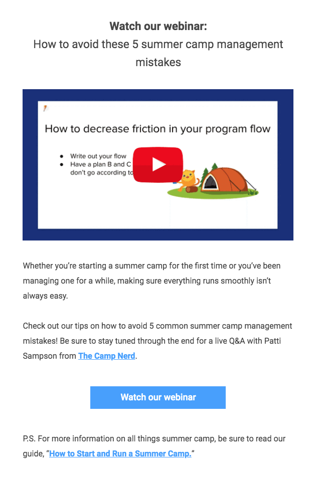 Another thing to keep in mind is that if your webinar is about a technical topic, it might be a good idea to ask someone from your support team to join in and help answer questions. We do this for any product- or integration-focused webinars, just in case we need a little extra help.