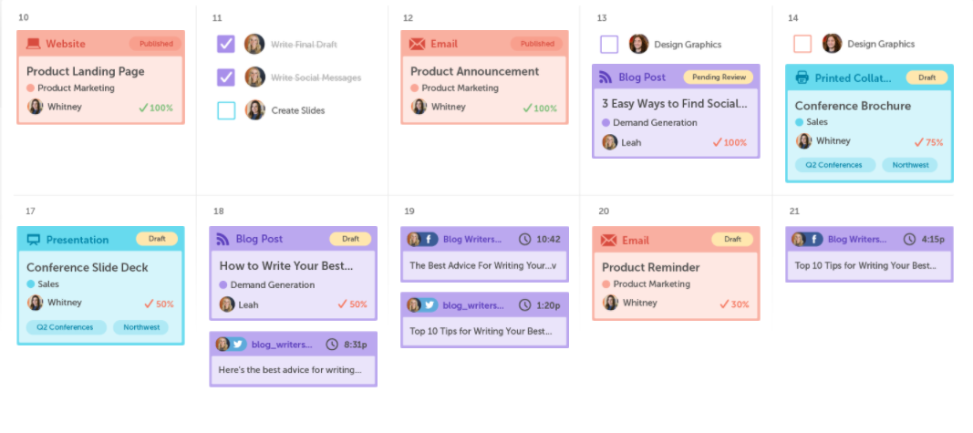 CoSchedule is a popular choice for organizations in need of content planning. This content marketing platform includes an editorial calendar along with features for managing social media, assigning tasks to your team, and having team discussions about assigned tasks.
