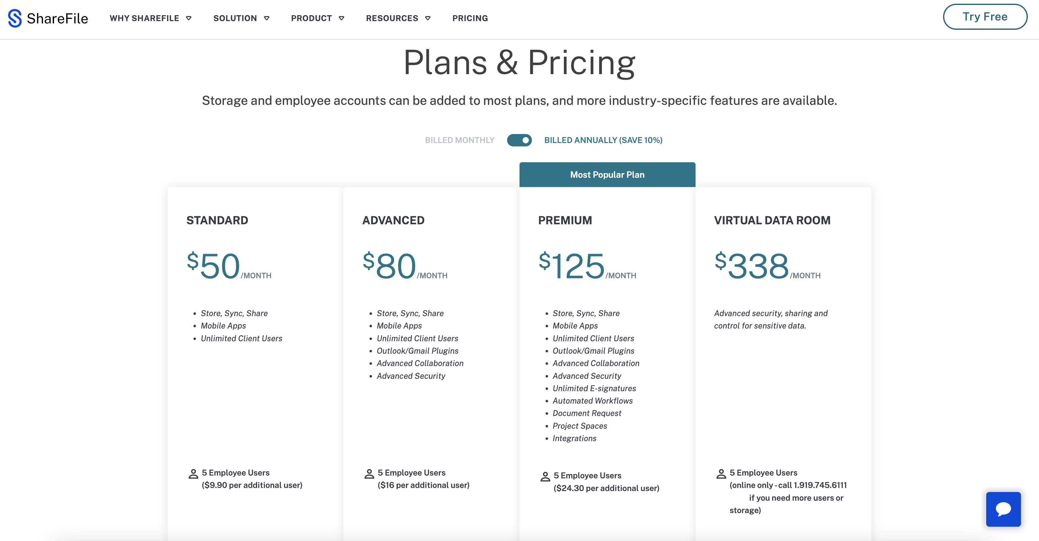 ShareFile is an excellent option for any finance, insurance, healthcare, and accounting company. Owned by Citrix, they offer bank-level data encryption and meet the strictest regulatory standards. They are fully HIPAA, HITECH, FINRA, and CFPB compliant. Their customers regularly store sensitive documents, including M&A details, clinical trials, and fundraising within their platform.