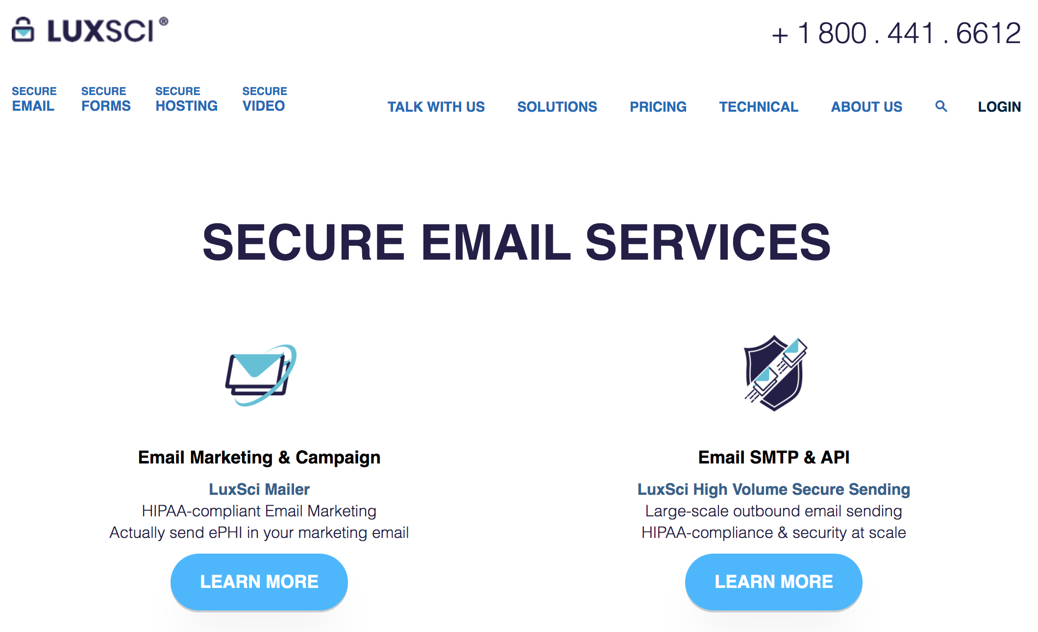 LuxSci is a complete HIPAA-friendly enterprise solution, although it offers plans for small businesses as well. LuxSci provides not only HIPAA-friendly email services, but also Zoom-based video conferencing and online forms. Since 1999, LuxSci has kept health information and communications secure. Many medical and dental institutions use its services.