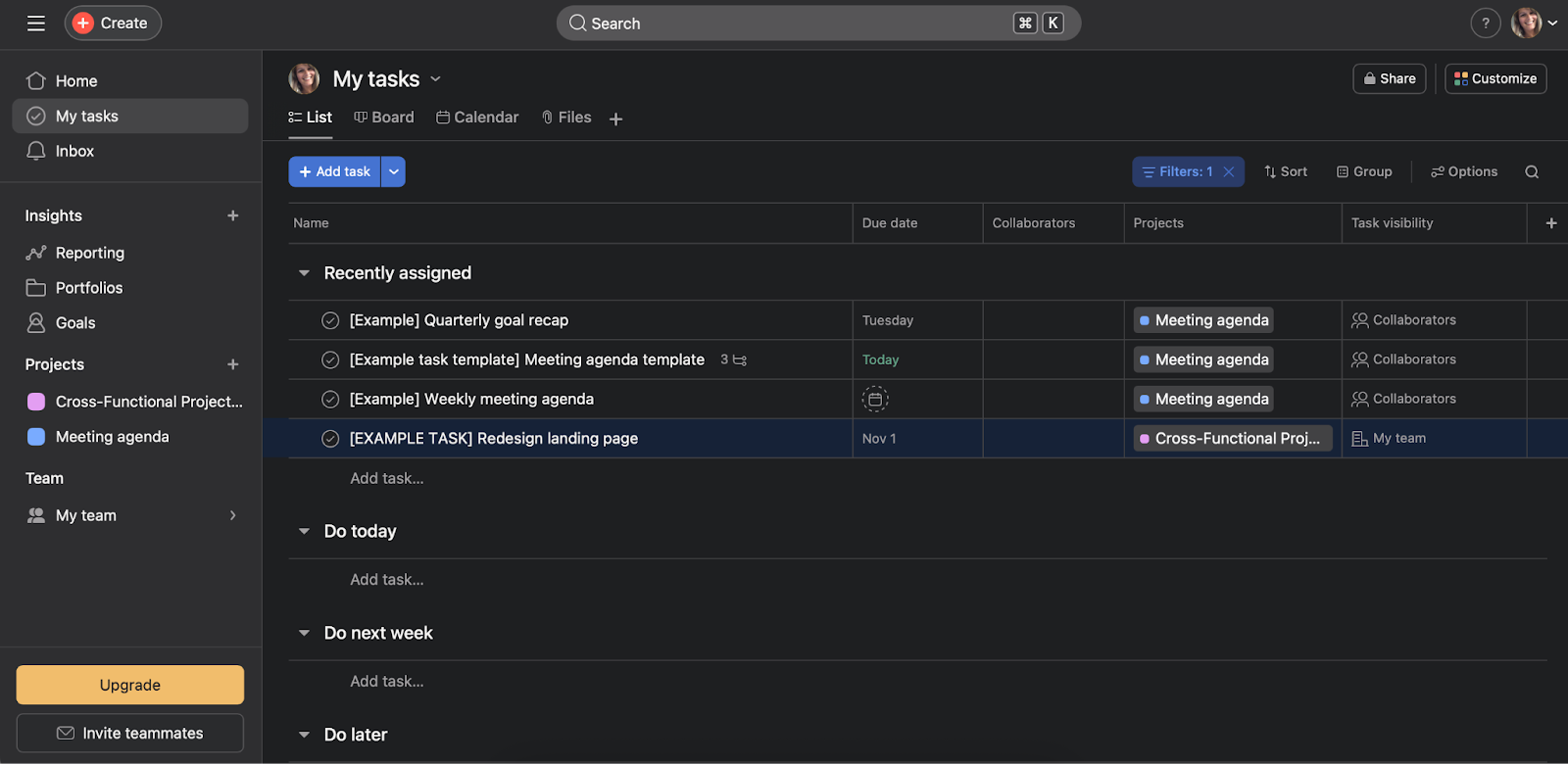 - Starter: $10.99 per month for access to Asana AI, additional views, and more