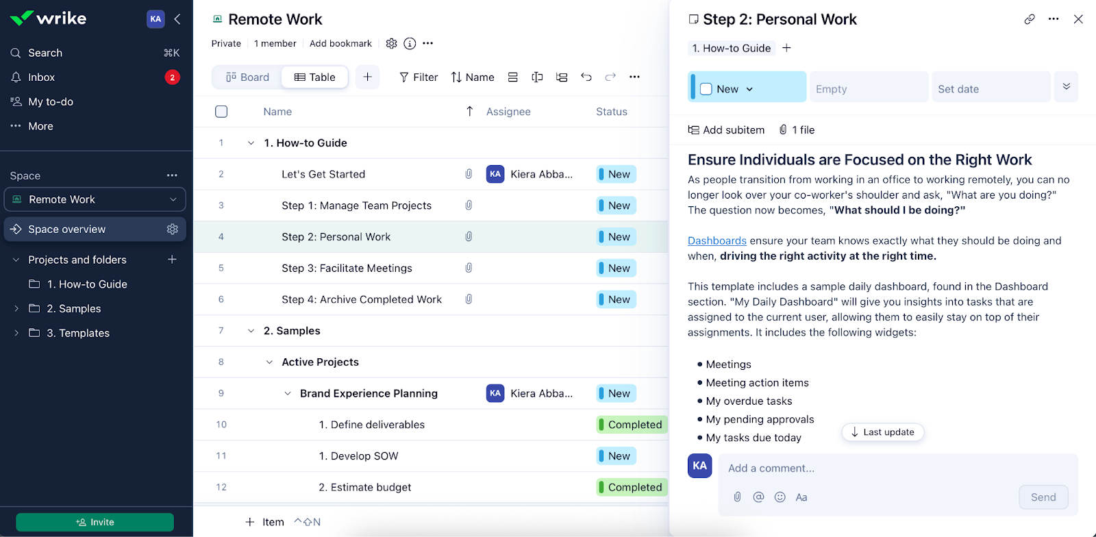 If all you need is a simple to-do list, Wrike is probably overkill. Still, it’s a viable option for managing a very intricate personal project or if you run a small business with plans to scale.