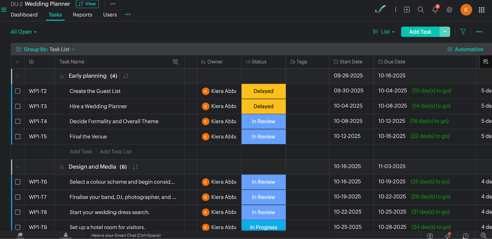 - AI assistant — called Zia — for project reports, predict task delays, and automated workflows