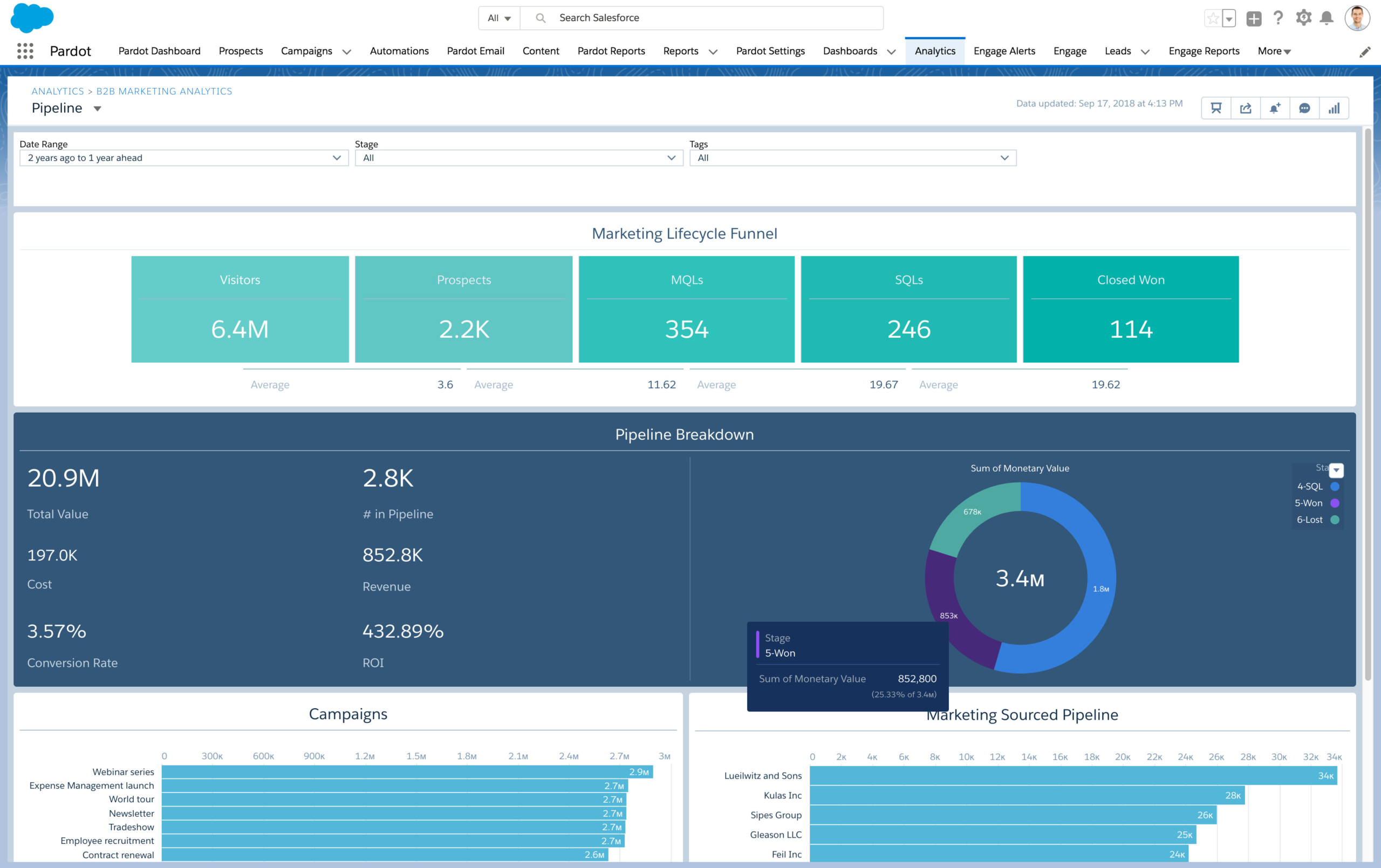 Pardot also provides deep analytics and insights into campaign performance, user behaviors, and ROI, enabling marketers to optimize their strategies. Integrated with Salesforce’s core CRM system, Pardot ensures a seamless data flow between sales and marketing, fostering alignment between both departments and enabling more personalized, timely engagements with prospects and customers.