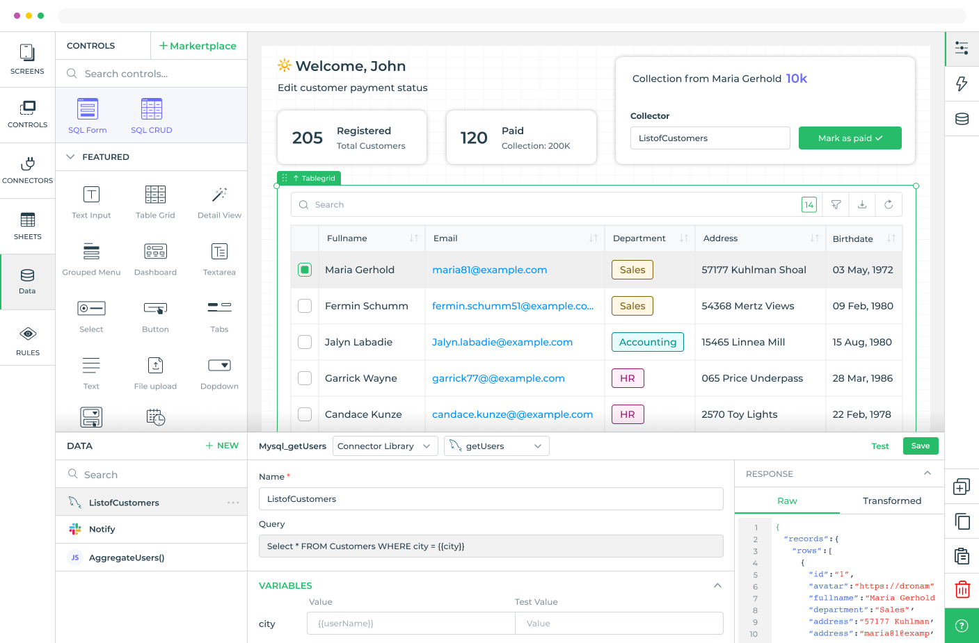 DronaHQ is a tool designed for low-code app development. Users can build both internal-facing apps and apps for public use. DronaHQ comes with prebuilt templates and components and offers a simple drag-and-drop interface, with the option of extending your app designs using code. The platform lets developers test their apps in controlled environments and manage app version histories.
