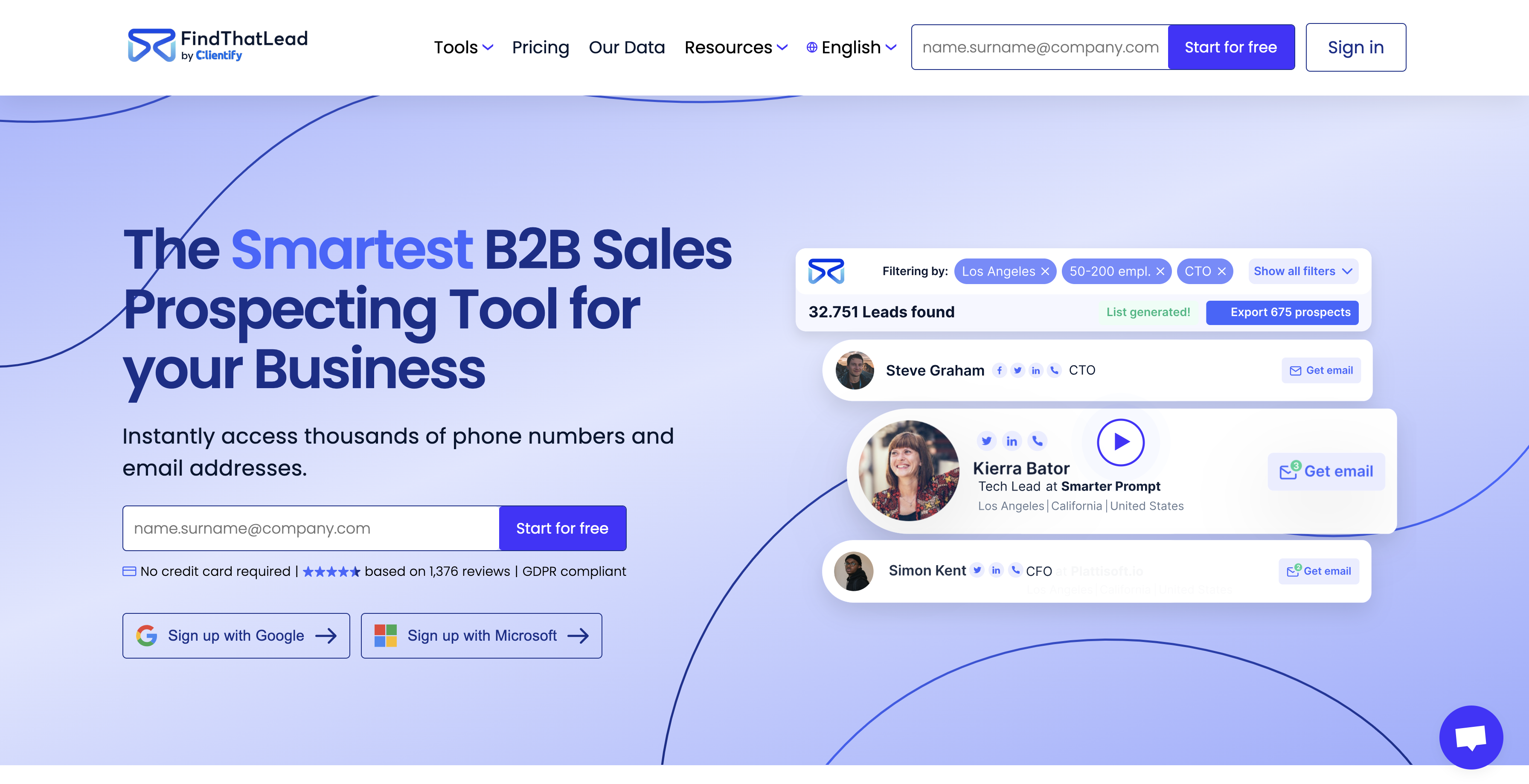 FindThatLead is a business-to-business sales prospecting software that lets users find potential customers using search filters and send them personalized cold-reach emails. FindThatLead offers email templates for a quick start. FindThatLead can help users find their leads’ LinkedIn profiles, phone numbers, and emails.